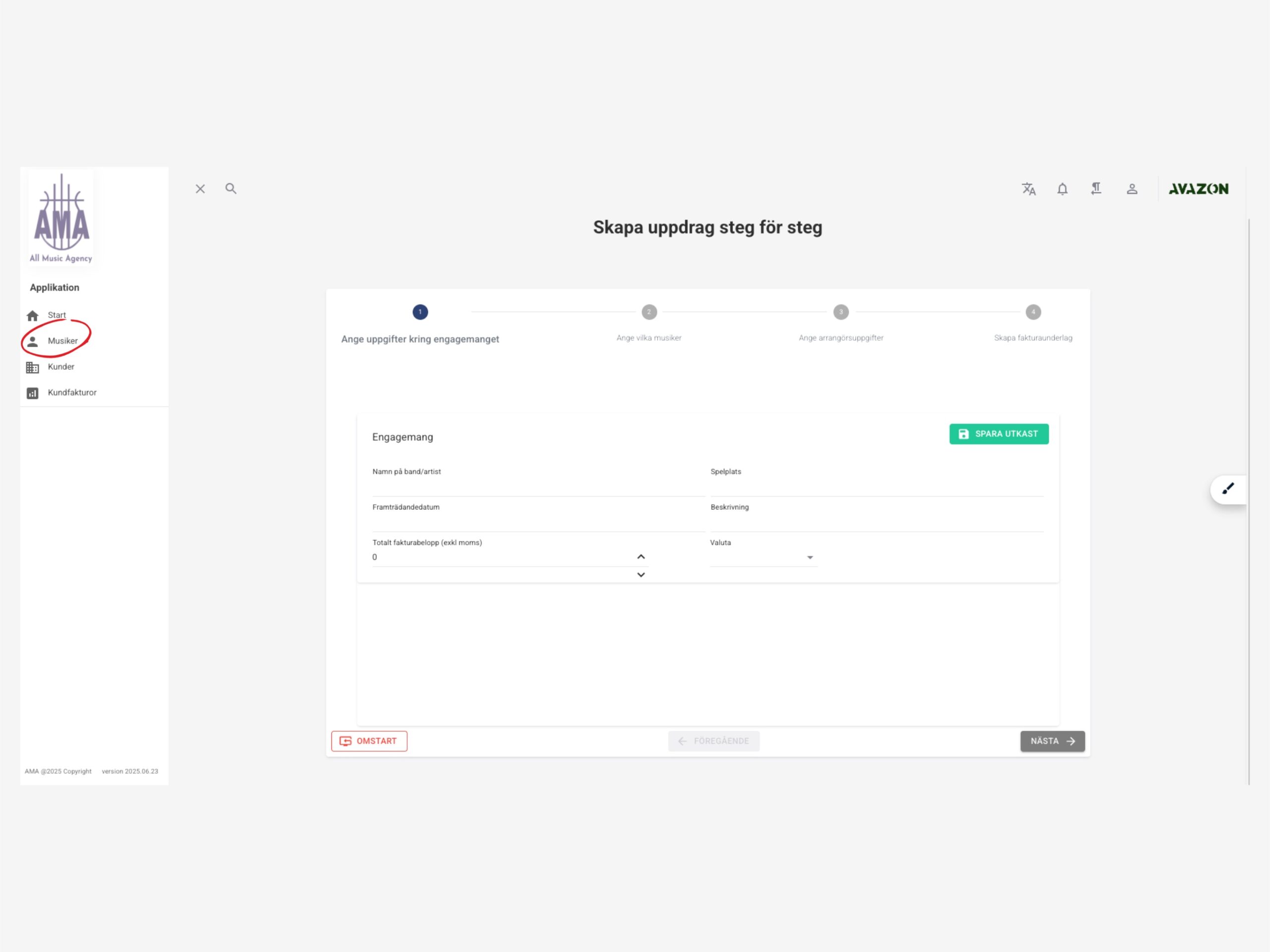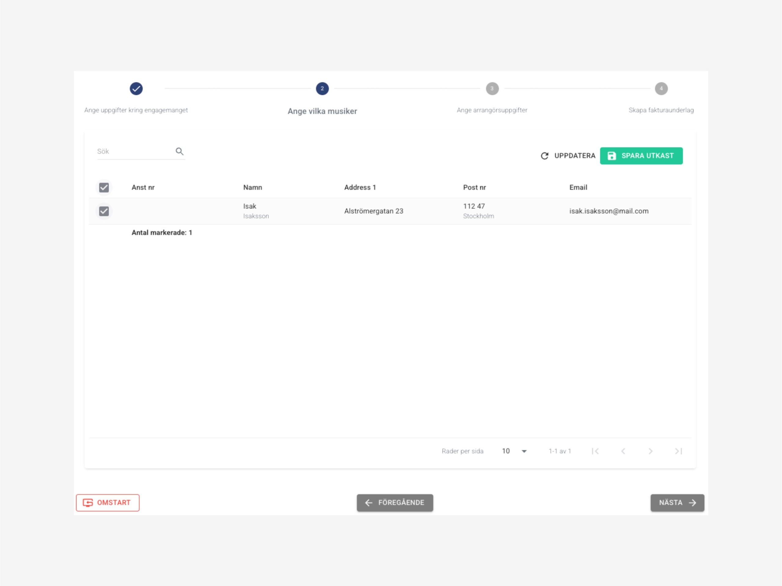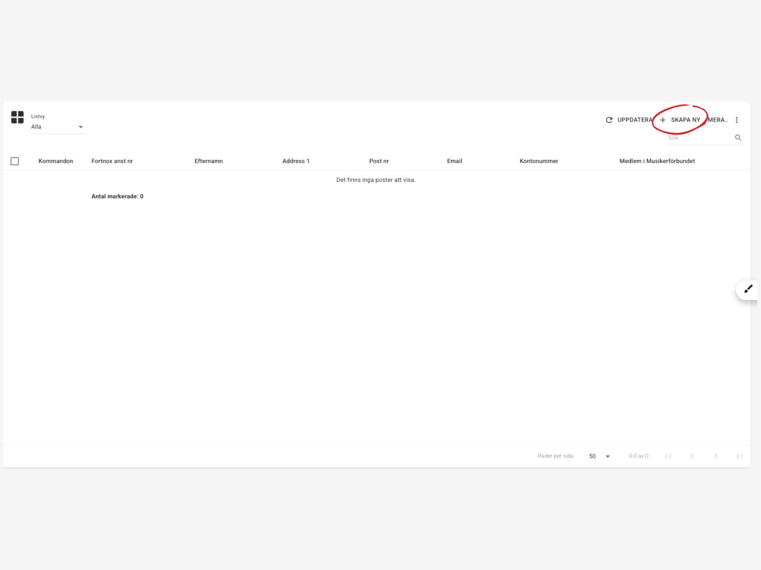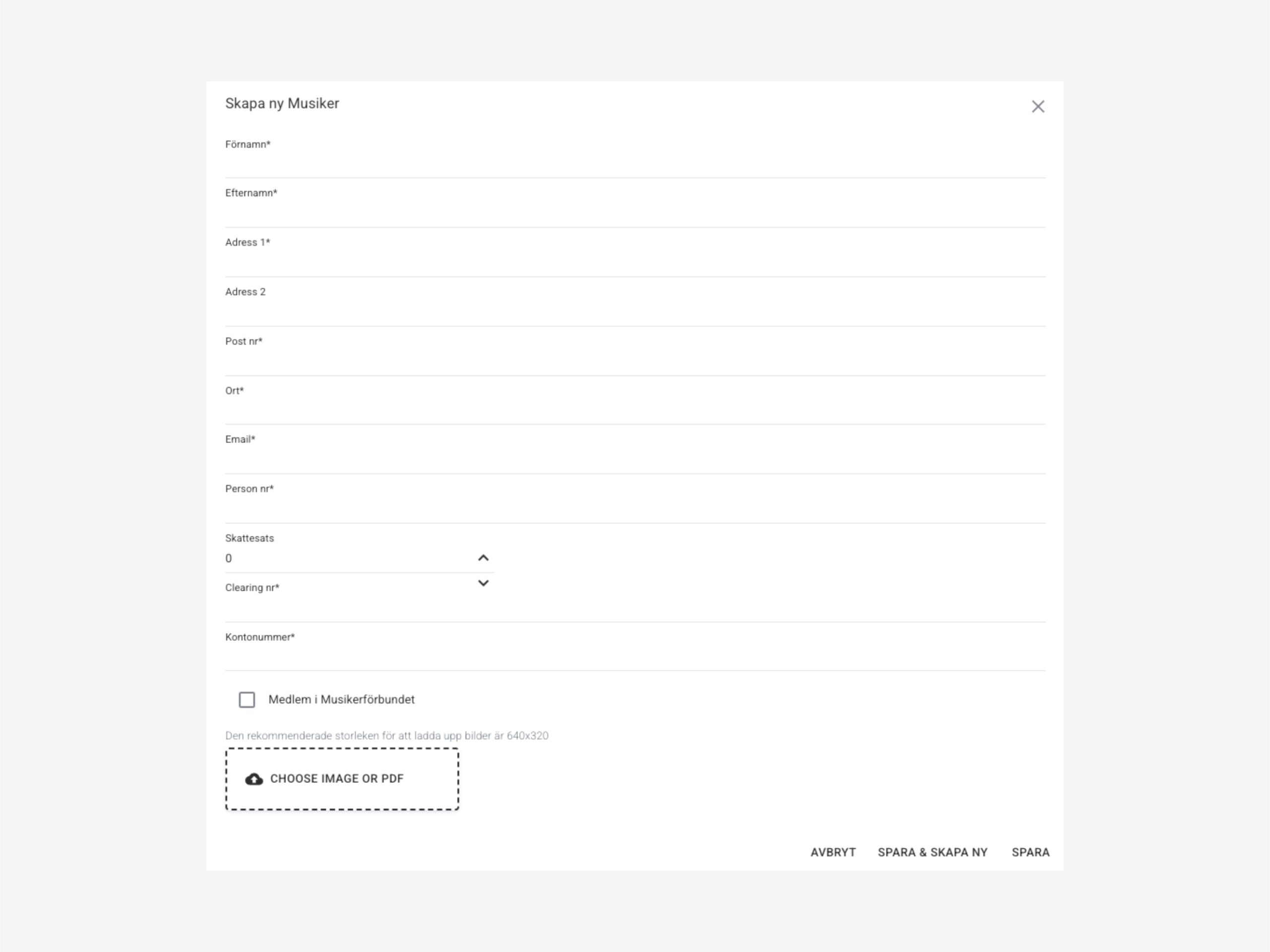 Meny: Musiker → Skapa ny. Fyll i uppgifter.