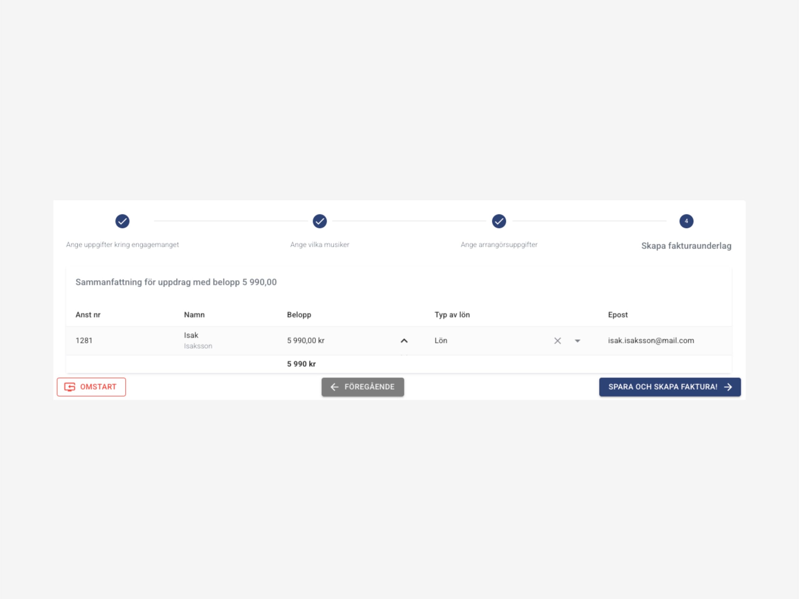 4. Kontrollera uppgifter och klicka ”Spara och skapa faktura!”